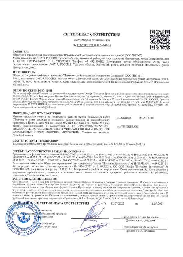 | Теплопроводность, Вт/(м*°C) | 0,034 - 0,120 |